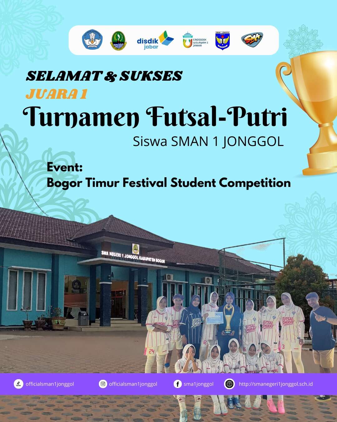 Tim Futsal Puteri SMAN 1 Jonggol berhasil menorehkan prestasi gemilang di ajang regional festival Bogor Timur: 🥇 Juara 1 Turnamen Futsal-P...